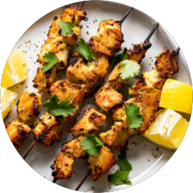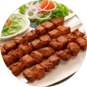 Tikka Kebab is a flavorful dish made from marinated chunks of meat (usually chicken, beef, or lamb), spiced with a blend of aromatic spices, and grilled to perfection, offering a smoky, tender, and juicy texture.