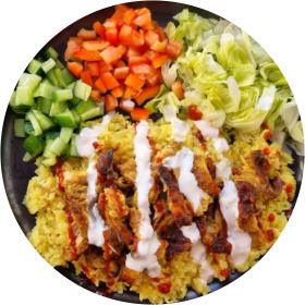 Chicken Over Rice is a simple yet satisfying dish that features tender, seasoned chicken served over a bed of aromatic steamed rice, often complemented with a variety of sauces for extra flavor.